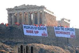 Το ξημέρωμα της Τρίτης, 4 Μάη του 2010, βρήκε το Βράχο της Ακρόπολης στολισμένο με δυο τεράστια πανό του ΚΚΕ με το σύνθημα «Λαοί της Ευρώπης ξεσηκωθείτε», γραμμένα στα ελληνικά και τα αγγλικά. Η φωτογραφία με τα δυο πανό έγινε ένα από τα πιο αναγνωρίσιμα στιγμιότυπα της πάλης του ελληνικού λαού εν μέσω καπιταλιστικής κρίσης, σε πανευρωπαϊκό και παγκόσμιο επίπεδο. Με δεδομένη τη δύναμη του συνθήματος και την απήχησή του, η φωτογραφία αποτελεί την καλύτερη ηλεκτρονική κάρτα για την ανταλλαγή ευχών στην περίοδο των γιορτών, μεταξύ συντρόφων, φίλων και συγγενών στην Ελλάδα και το εξωτερικό. Να γεμίσουμε τα e-mail γνωστών και δικών μας ανθρώπων, να στείλουμε μηνύματα στα κινητά, με τις ευχές μας γραμμένες στην κάρτα, την οποία μπορεί να βρει και να «κατεβάσει» κανείς στην ηλεκτρονική διεύθυνση http://www.rizospastis.gr/ext.do?res=/cards/akropoli.jpg